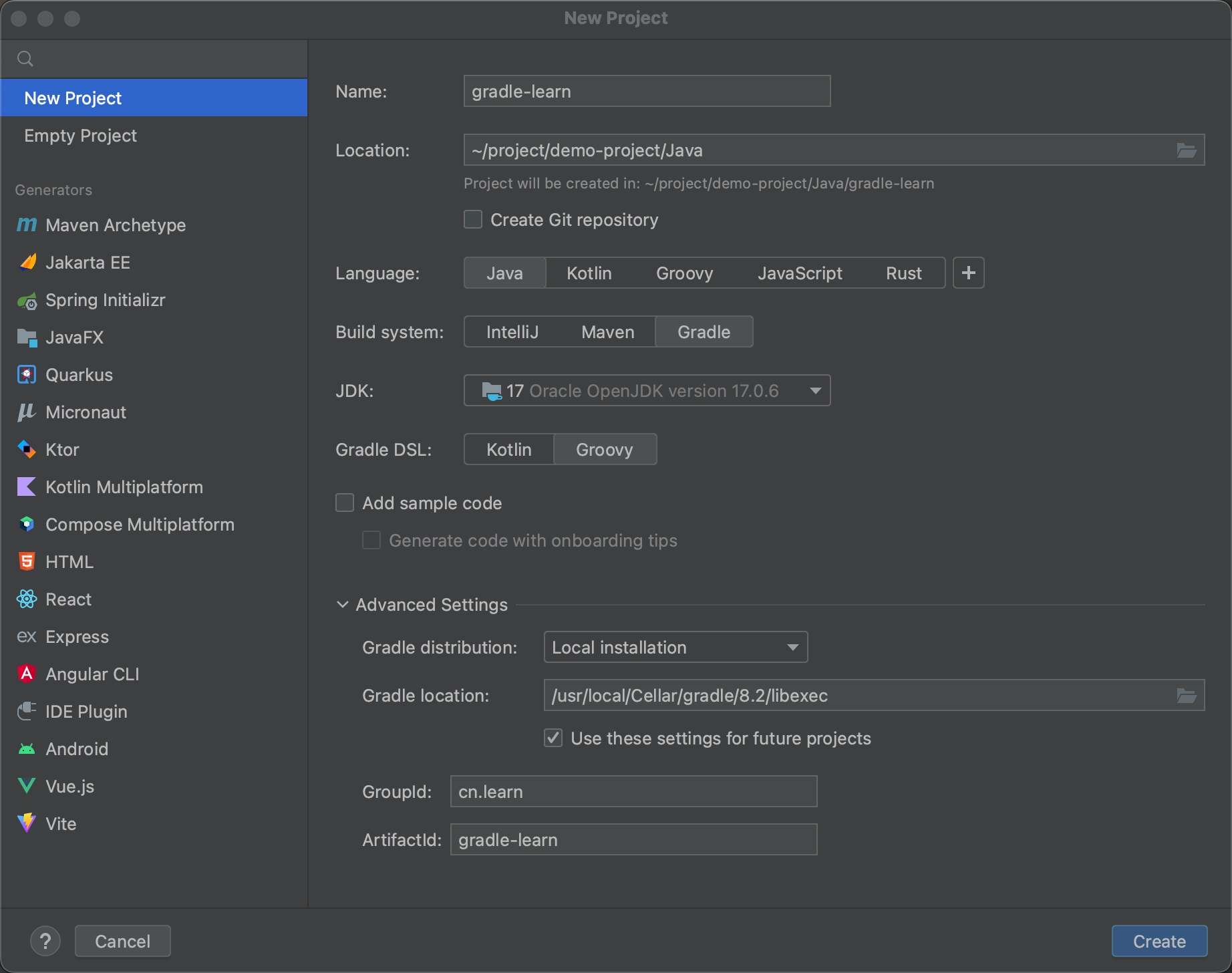选择Gradle DSL语法:选择Groovy即可