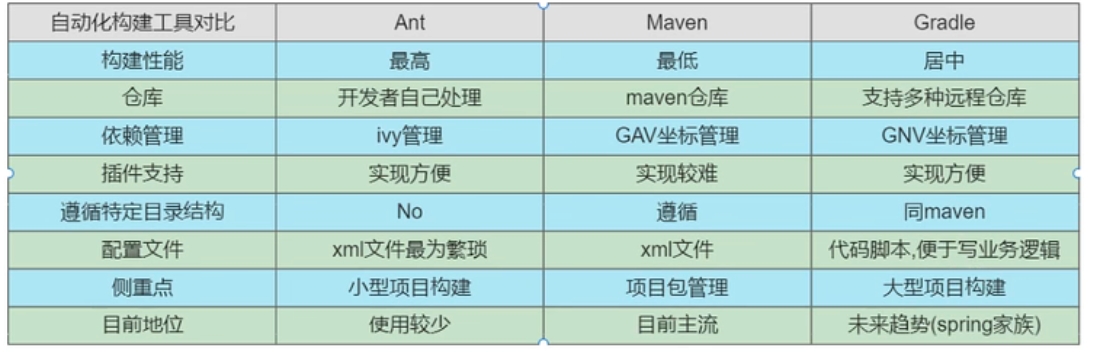 优点:集Ant脚本的灵活性+Maven约定大于诶之的项目目录优势,支持多种远程仓库和插件,侧重于大项目构建